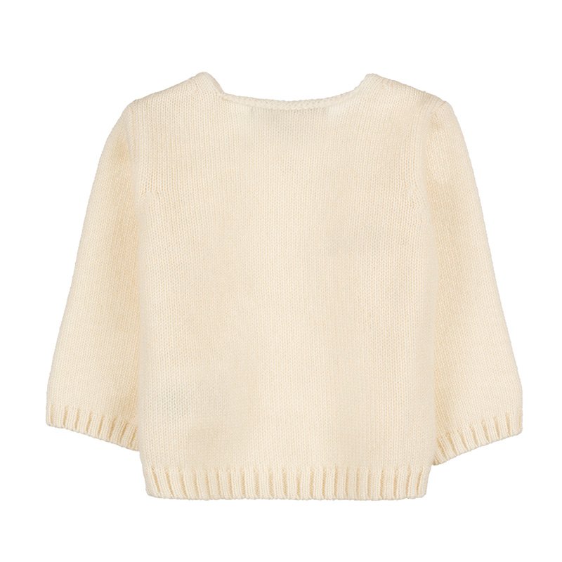 Graziosa tutina in cashmere a due pezzi impreziosita dalla stampa di un dolcissimo orsetto e da costine.