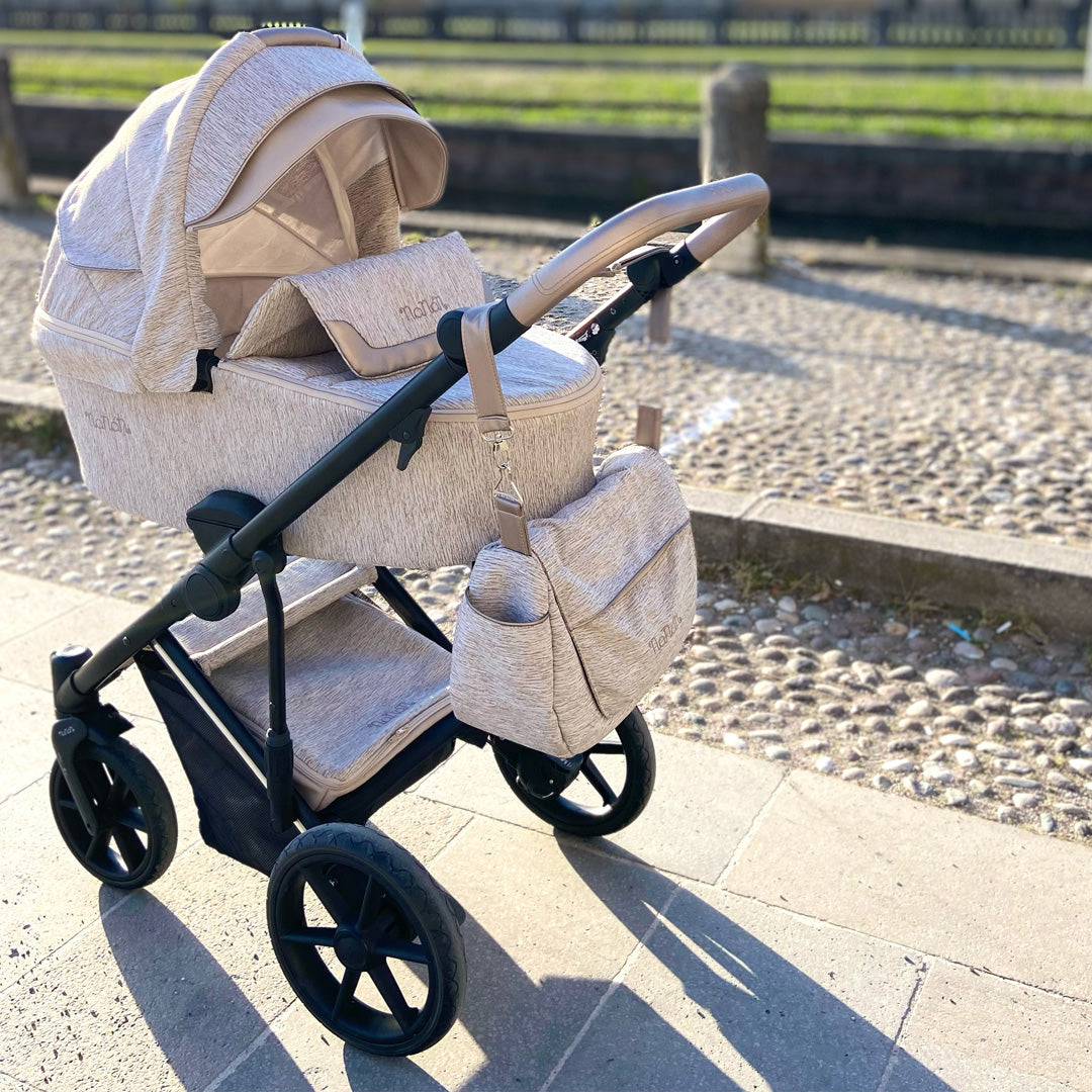 Dolce abito da cerimonia beige impreziosito da un fiocco in vita.