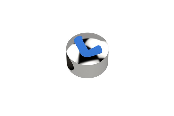 Cursore in puro argento 925 con inciso in stampato colore azzurro la lettera L.