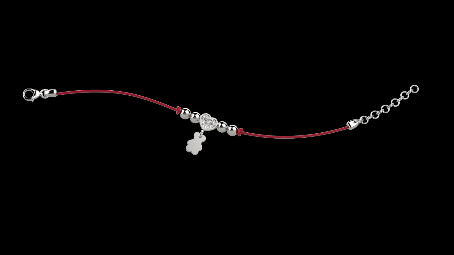 Il bracciale con laccio rosso della Nanàn Bijou Collection è reso prezioso dal dolcissimo orsetto, logo di Nanàn.