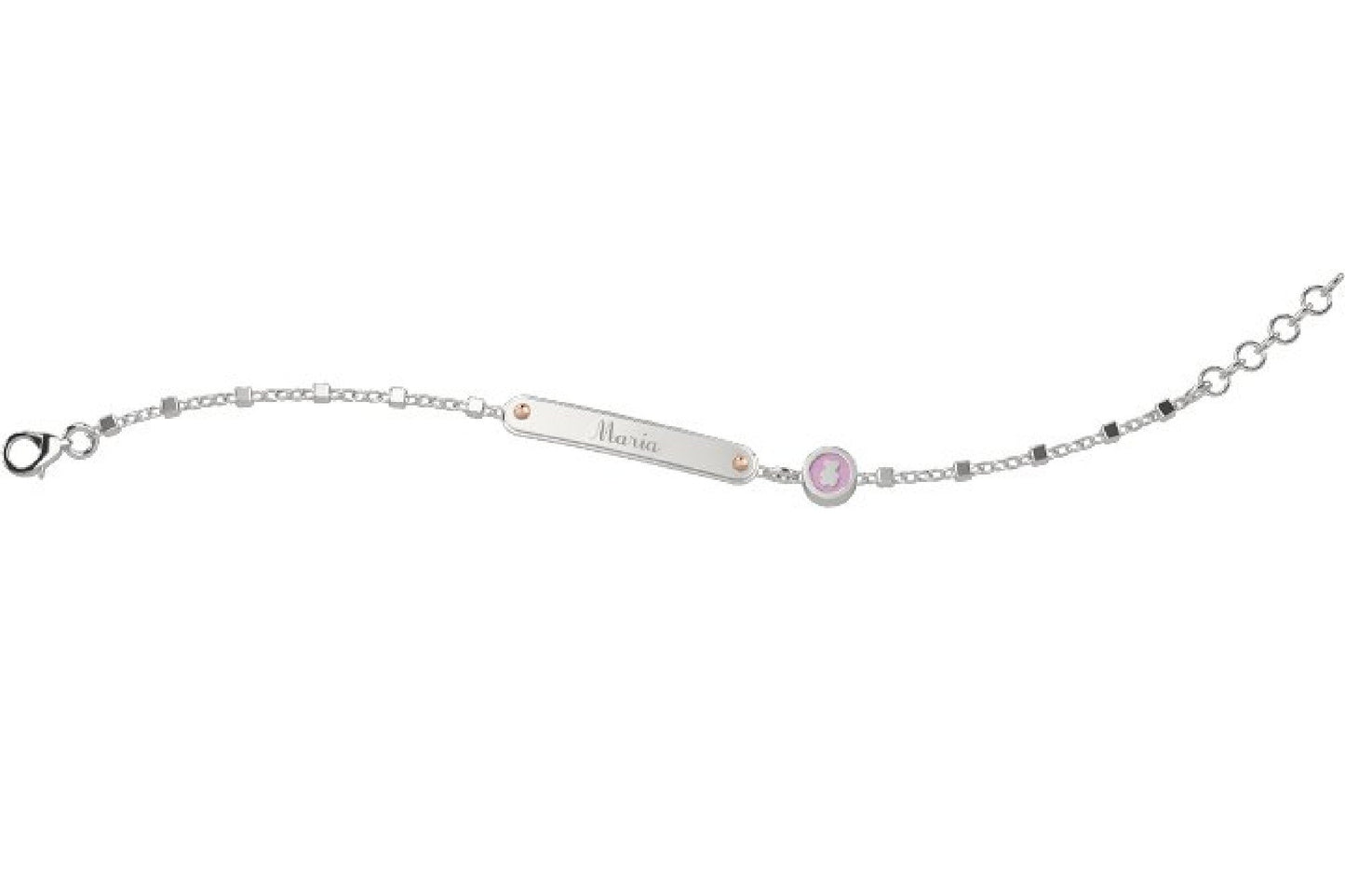 Il raffinato bracciale in puro argento della linea Nanàn Bijou è rifinito nei dettagli, con una targhetta in cui inserire il tuo nome o quello della tuo bimba. Arricchito da un dolce orsetto incastonati in un cerchio rosa. Dono prezioso, ricordo per la vita. N.B. Al momento dell'acquisto inserisci il nome nelle note. Per la personalizzazione sono previsti minimo 7 giorni di attesa.