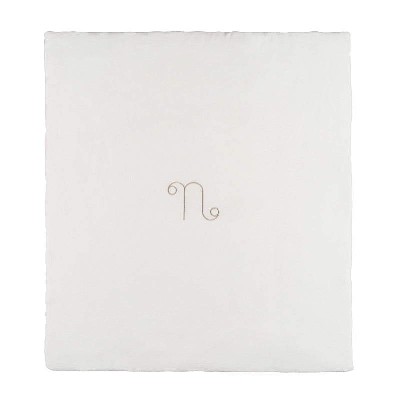 Graziosa coperta in piquet, impreziosita dalla presenza della 'n' ricamata davanti.