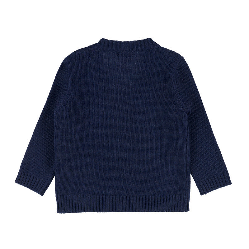 Cardigan blu a V con orsetto