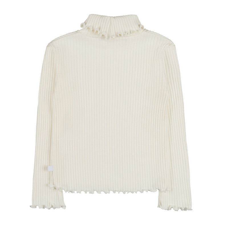 Un capo essenziale e versatile per il guardaroba di ogni bambina! Questo dolcevita a coste bianco è realizzato in morbido tessuto elasticizzato che assicura comfort e calore. Perfetto da indossare da solo o come base sotto giacche e maglioni, è ideale per affrontare le giornate più fresche con stile semplice e raffinato.