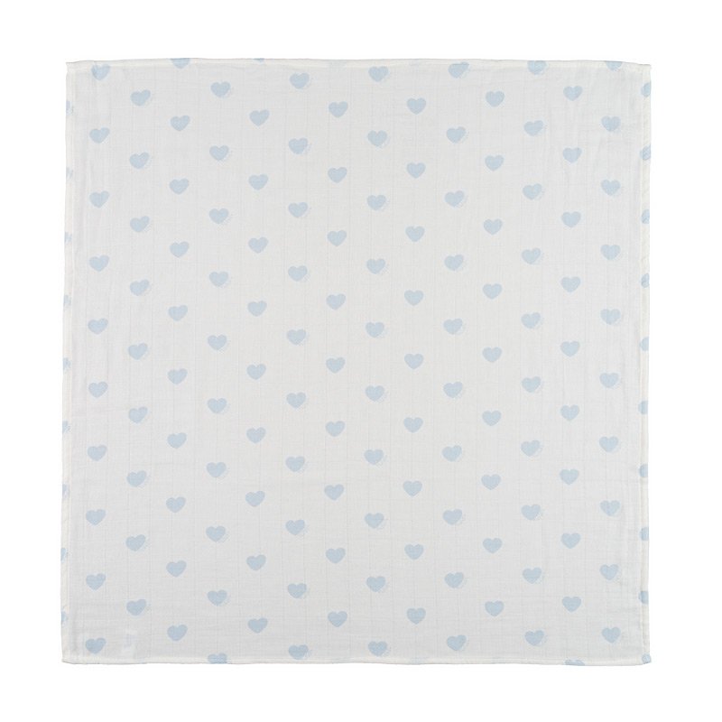 Set 3 pz mussola all over cuori 80x80 cm azzurro