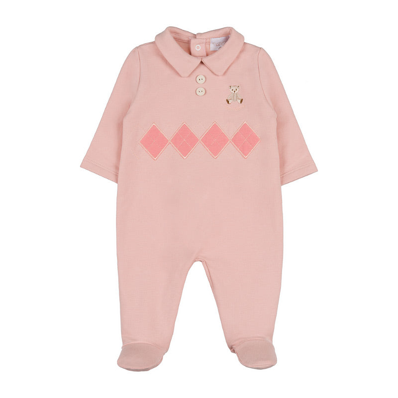 Tutina rosa con orsetto e rombi