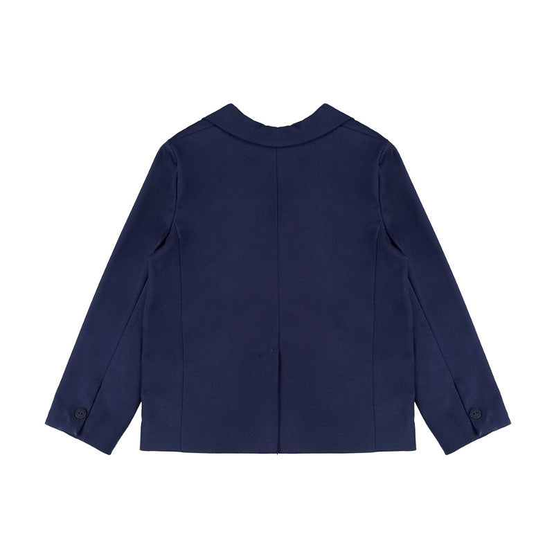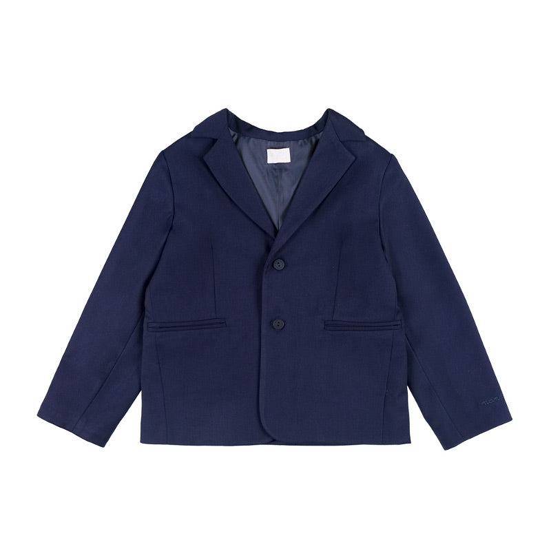 Porta un tocco di freschezza e raffinatezza al guardaroba del tuo bambino con questa giacca elegante. Caratterizzata da un taglio classico a due bottoni, rever e tasche frontali a filetto, è perfetta per cerimonie, eventi speciali o occasioni formali.