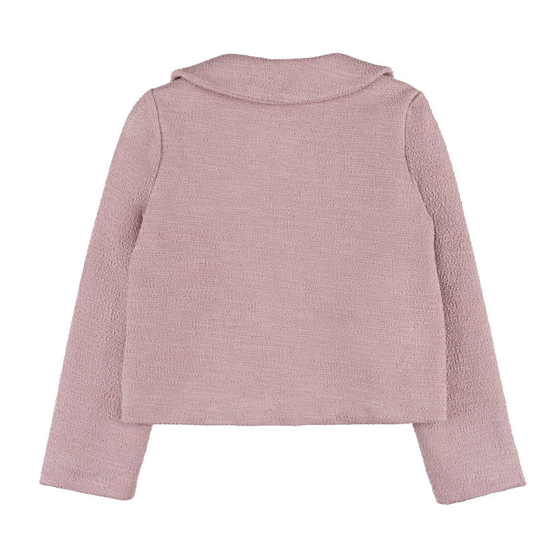 Morbido e raffinato, questo giacchino in bouclé è perfetto per completare con eleganza ogni outfit da bambina. Il tessuto strutturato e leggermente testurizzato dona un look sofisticato ma sempre adatto ai più piccoli.