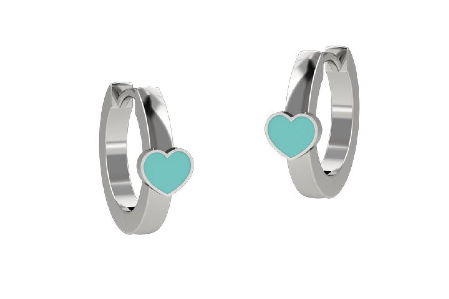 Prezzo normale €17,00Coppia di orecchini a cerchio con un dolce cuore smaltato in turchese
