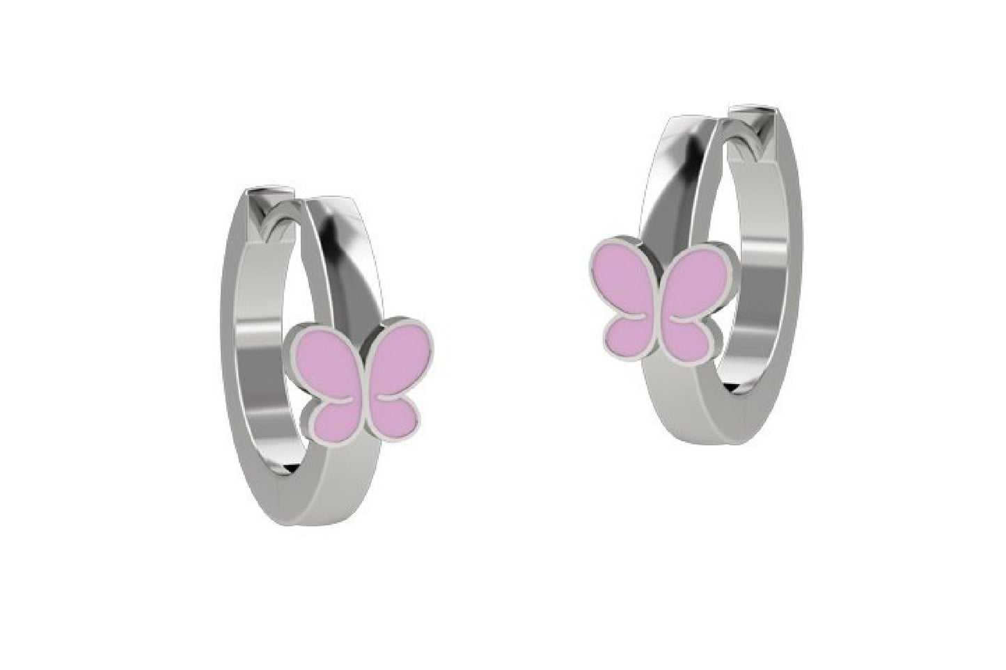 Coppia di orecchini a cerchio con una dolce farfalla smaltata in rosa