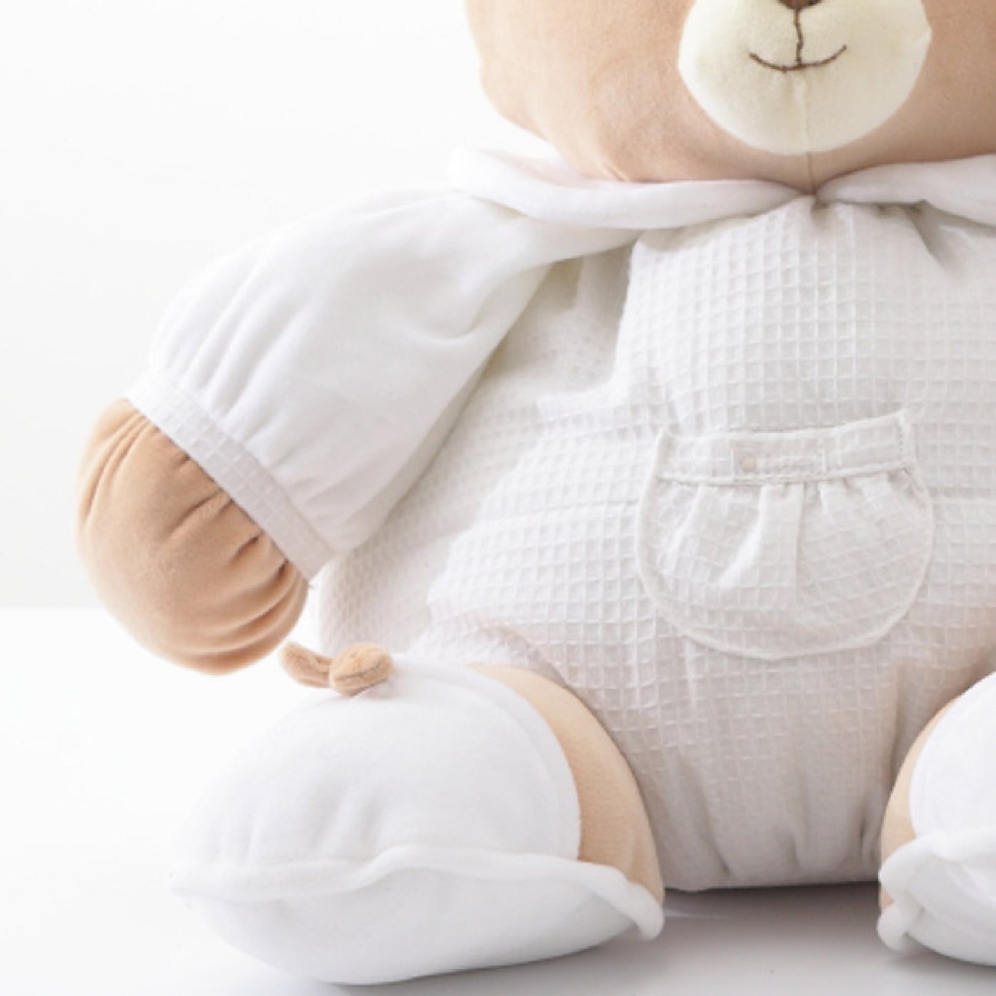 Il peluche Nanàn dell'orsetto Tato, è un amico e uno dei primi compagni del tuo bebé. Il morbido orsetto ha una composizione in puro cotone al 100%. Vestito in tessuto piquet, con il musetto, le mani e i piedi in ciniglia, materiale classico Nanàn. Tato è un tenero compagno del tuo bambino e lo accompagna in ogni momento della giornata e della notte!
