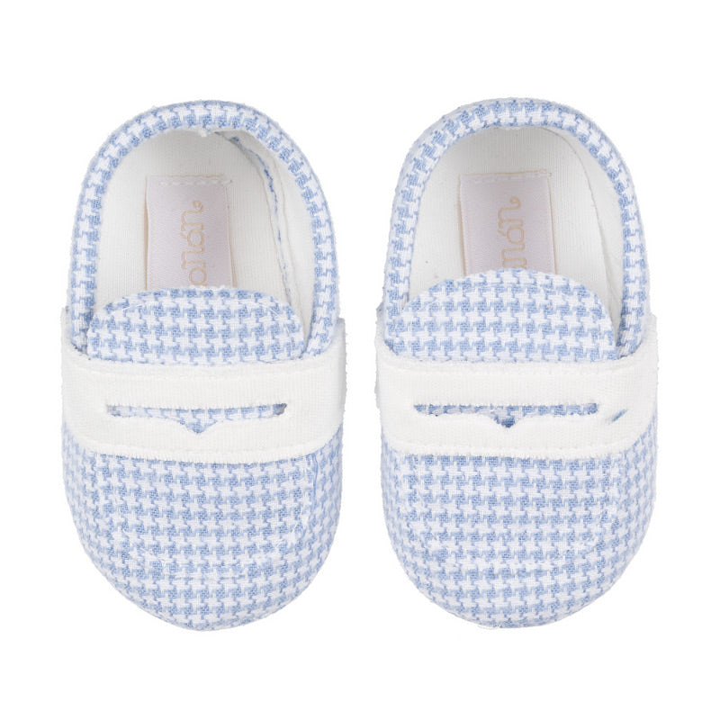 Prezzo normale €35,00Grazioso mocassino in pied de poule azzurro della collezione “Pastelli boy”.