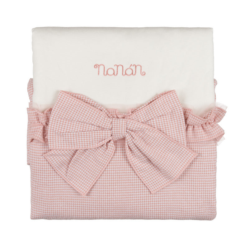Prezzo normale €62,90Graziosa coperta con rouches in pied de poule e tulle con fiocco rosa della collezione “Pastelli girl”.
