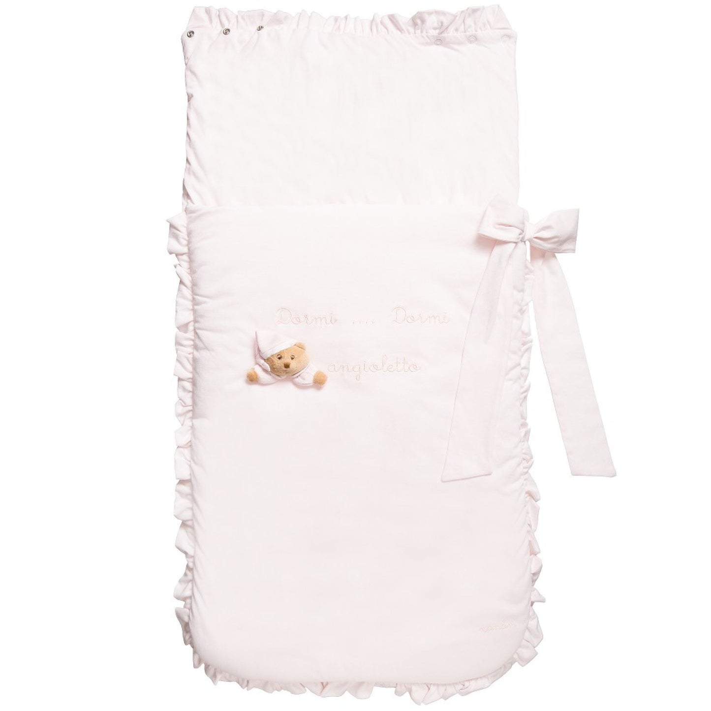 Il sacco portababy rosa della linea Puccio è rivestito in morbido cotone ed imbottito per portare a spasso il tuo bambino avvolto dalla morbidezza, mantenendolo al caldo e libero di muoversi. Il sacco è impreziosito da una romantica balza e da un fiocco laterale. L'applicazione del tenero orsetto Puccio è circondata della scritta ricamata "Dormi... dormi... angioletto". Gli Amici d'infanzia avvolgono di tenerezza e divertimento ogni momento della giornata del tuo bebè! Dimensions: 45x83cm