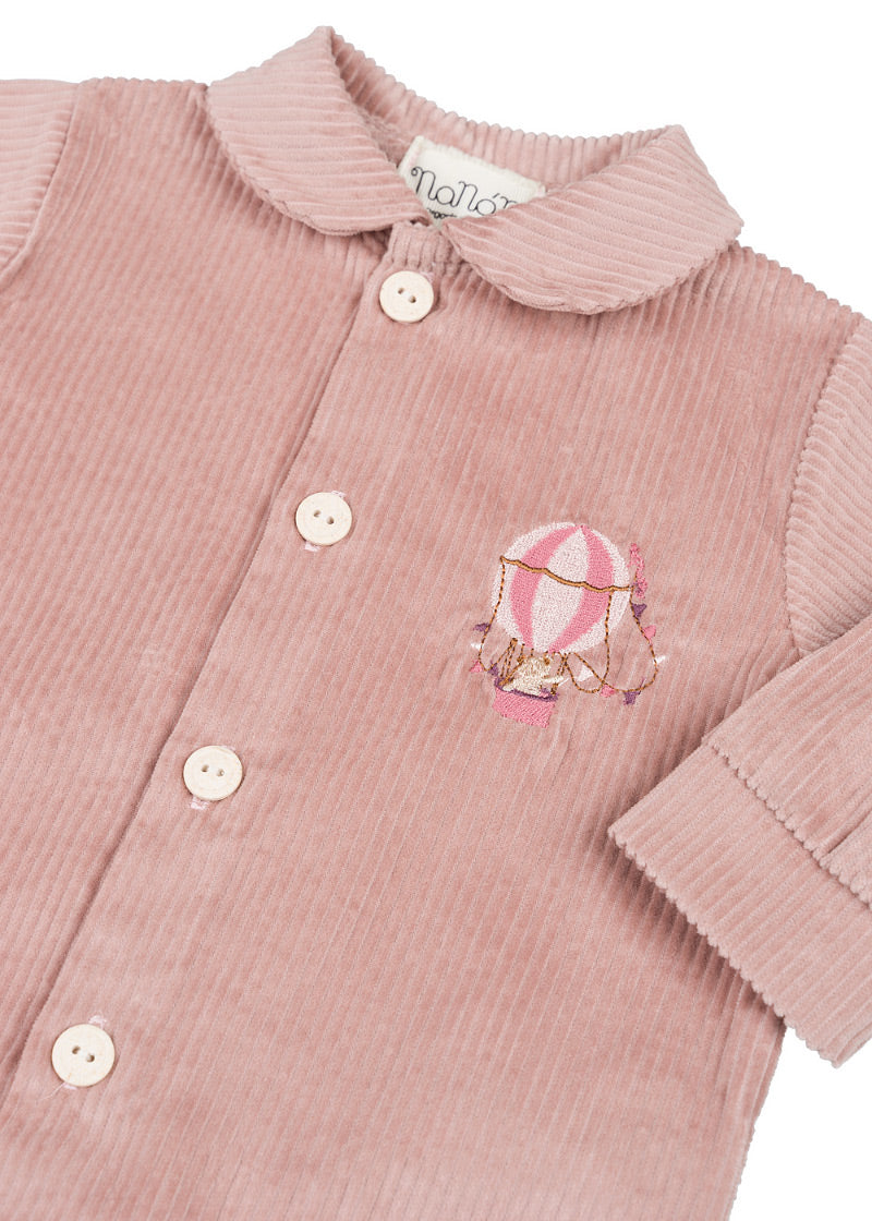 Questa tutina in morbido tessuto a costine è ideale per accompagnare il tuo piccolo nei suoi primi giorni con comfort e stile. L’apertura frontale rende il cambio facile e veloce, mentre il delicato ricamo a forma di mongolfiera aggiunge un tocco di fantasia e tenerezza al capo.