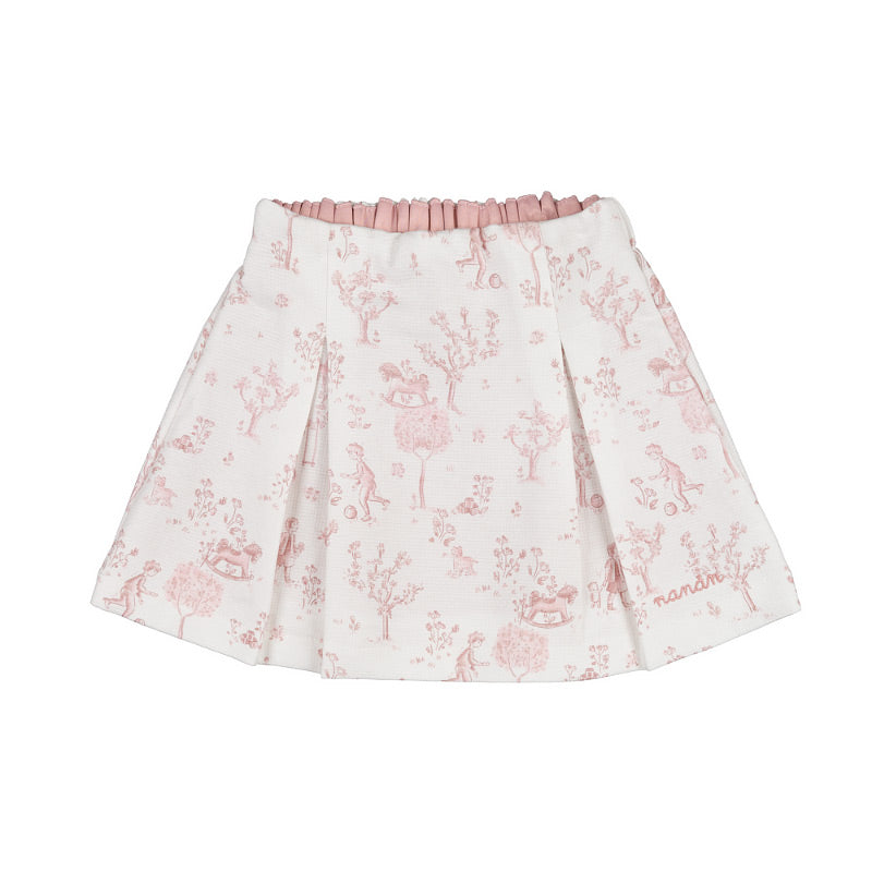Eleganz und Süße treffen sich in diesem prächtigen Ordnerrock. Hergestellt aus einem raffinierten weißen Stoff mit einem zarten Totile de Jouy -Druck, das kindliche Szenen mit einem Vintage -Geschmack darstellt, ist es das ideale Kleidungsstück für romantisches und zeitloses Aussehen. Das elastische Band im Leben garantiert eine komfortable und praktische Passform, die sich perfekt für jede Bewegung Ihres kleinen Mädchens begleitet.