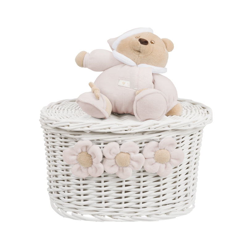 Regulärer Preis €29,60Die kleine ovale Nanàn-Box aus der Puccio-Kollektion ist aus handgeflochtenem Korbgeflecht gefertigt und gemäß europäischen Standards mit weißer Farbe auf Wasserbasis lackiert. Es ist ein sehr nützlicher Behälter, eine Wundertruhe, in der Sie alle Accessoires Ihres Babys aufbewahren können, um das Schlafzimmer stets aufgeräumt zu halten. Mit dem süßen Puccio auf der Oberseite leisten Sie dem Baby immer Gesellschaft! Puccio ist ein zärtlicher Begleiter Ihres Kindes und begleitet es in jedem Moment seines Tages!