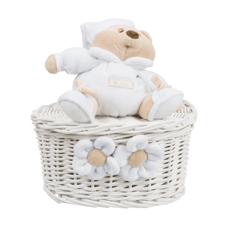 Regulärer Preis €40,80Die mittelgroße ovale Nanàn-Box aus der Puccio-Kollektion besteht aus handgeflochtenem Korbgeflecht und ist gemäß europäischen Standards mit weißer Farbe auf Wasserbasis lackiert. Es ist ein sehr nützlicher Behälter, eine Wundertruhe, in der Sie alle Accessoires Ihres Babys aufbewahren können, um das Schlafzimmer stets aufgeräumt zu halten. Mit dem süßen Puccio auf der Oberseite leisten Sie dem Baby immer Gesellschaft! Puccio ist ein zärtlicher Begleiter Ihres Kindes und begleitet es in jedem Moment seines Tages!