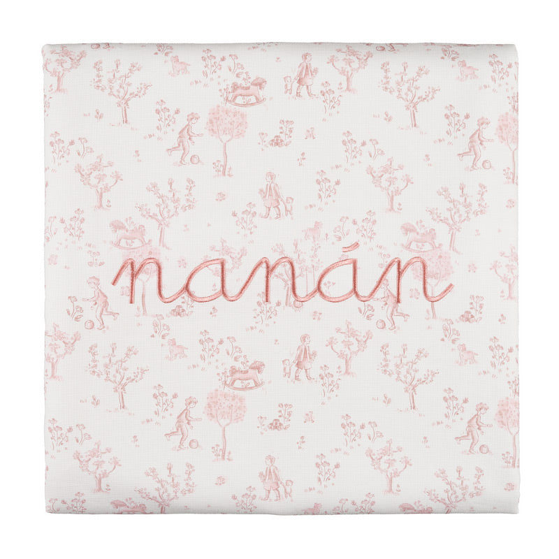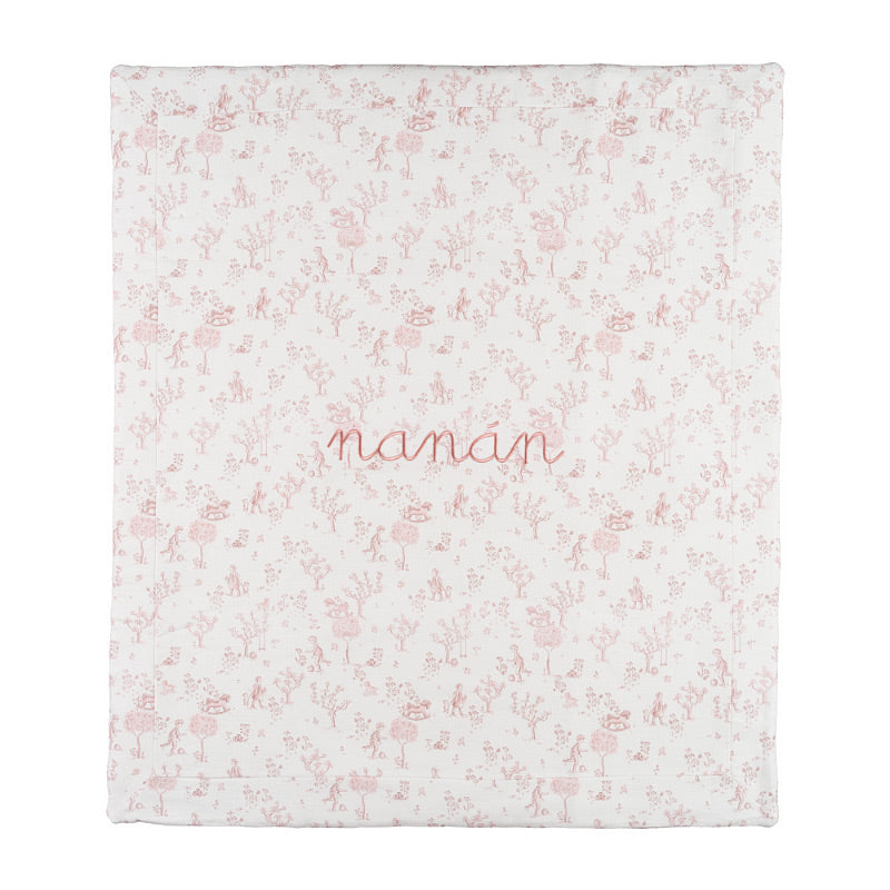 Wrap your baby in a cloud of sweetness with this refined soft cotton blanket, embellished with a romantic pink Toile de Jouy print. Perfect for the cradle, pram or cuddle moments, it combines classic style and comfort, ideal from birth.