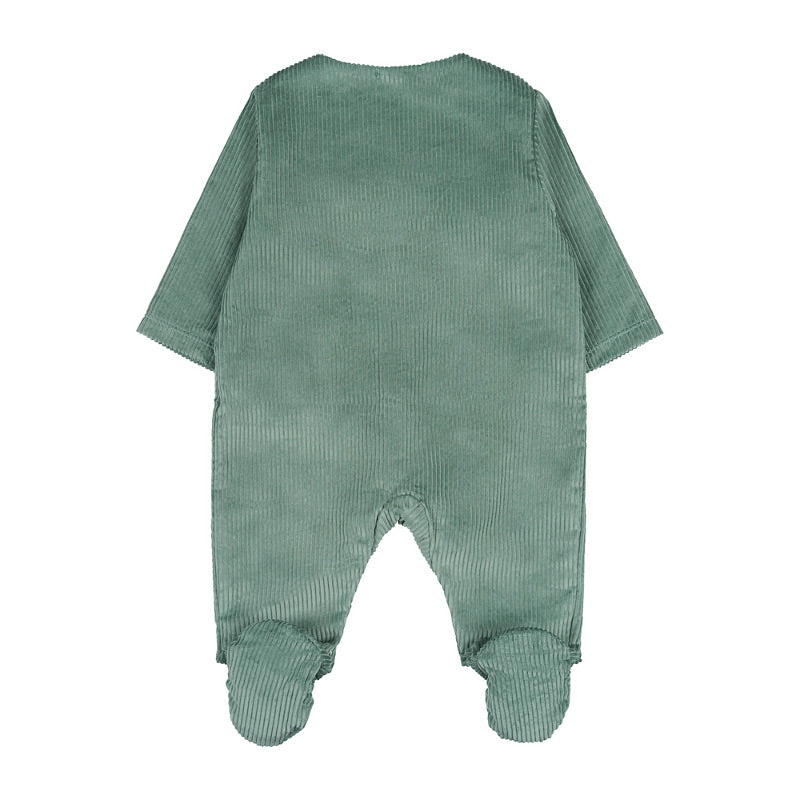 Confortevole e ricca di stile, questa tutina è realizzata in morbido velluto a coste. L’adorabile ricamo con trenino sul petto aggiunge un tocco giocoso. I bottoni frontalipermettono una vestibilità pratica e funzionale, ideale per i cambi rapidi.
