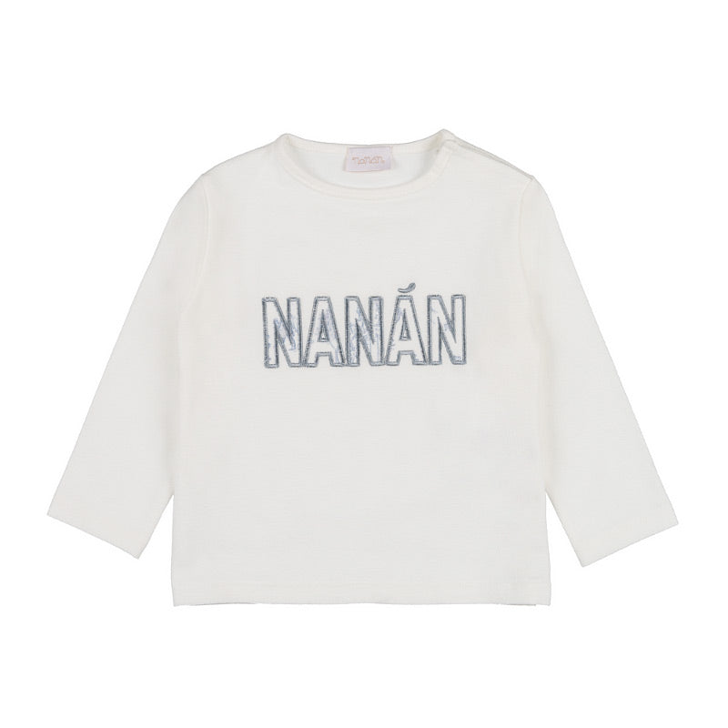 An ideal shirt for the daily looks of the little ones. Made of soft cotton, this long-sleeved t-shirt is embellished with the maxi "Nanán" logo embroidered on the front in blue relief. Perfect to combine with pants, jeans or sweatshirts of the same collection, it guarantees comfort and freedom of movement at any time of the day.