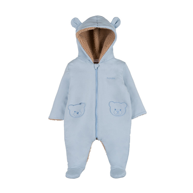Perfetto per le giornate fredde, questo tutone imbottito avvolge il tuo bambino in un caldo abbraccio, unendo comfort e praticità. Le morbide tasche a forma di orsetto aggiungono un tocco di tenerezza, mentre la chiusura con zip frontale facilita i cambi e l'abbigliamento.