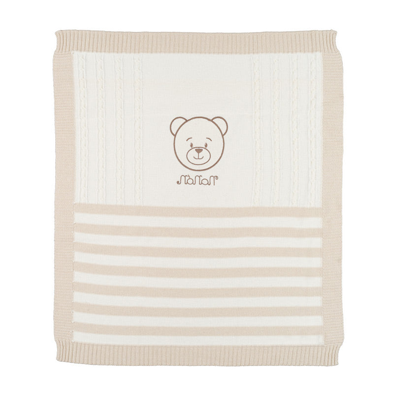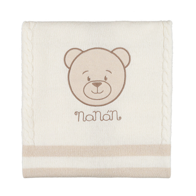 Pretty beige blanket from the "Mousse filo" collection, embellished with an adorable bear accompanied by the Nanan writing on the front