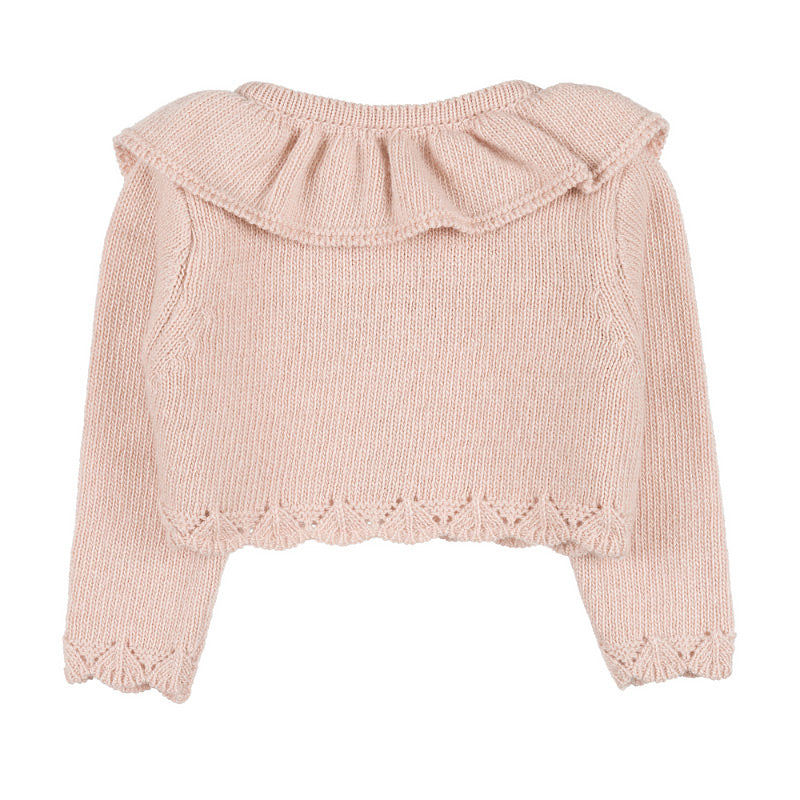 Cardigan with pink ruffles