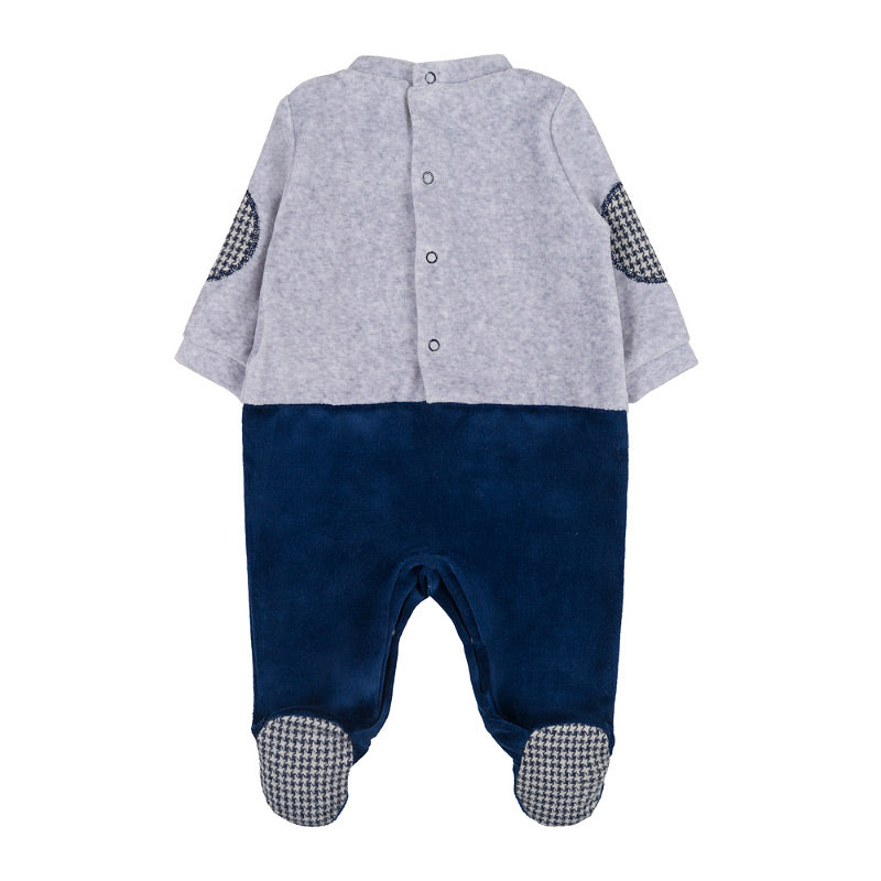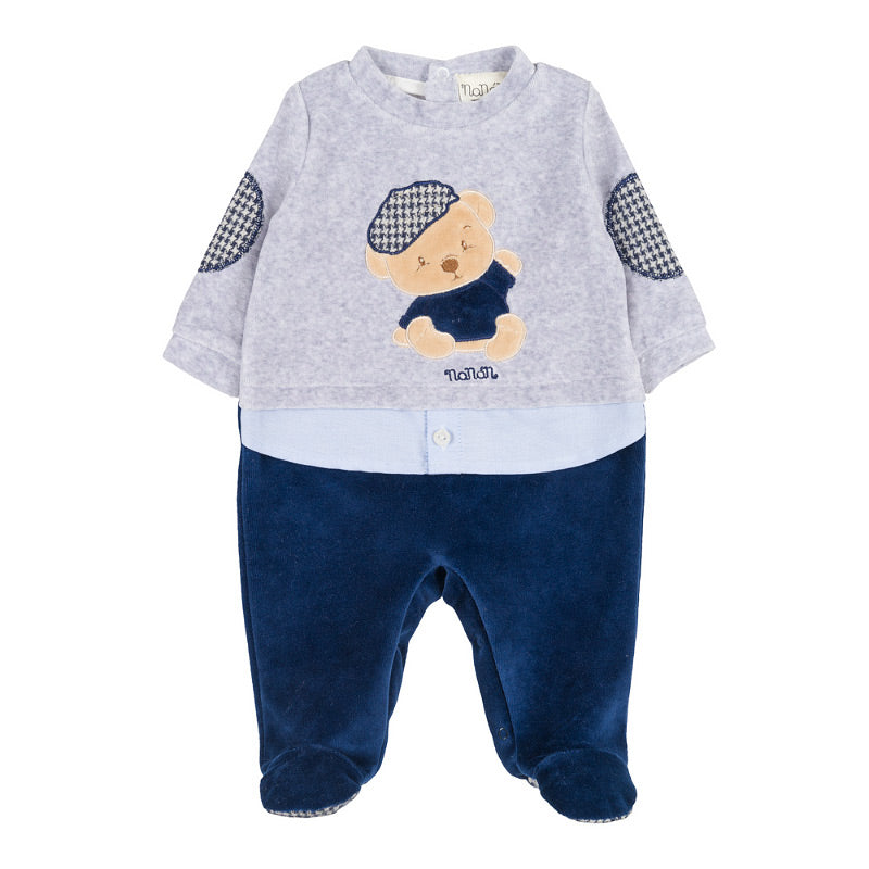 Normal price €47,50Pretty collarless onesie embellished with a shirt with a sweet bear, which will accompany your baby through his days with infinite sweetness!