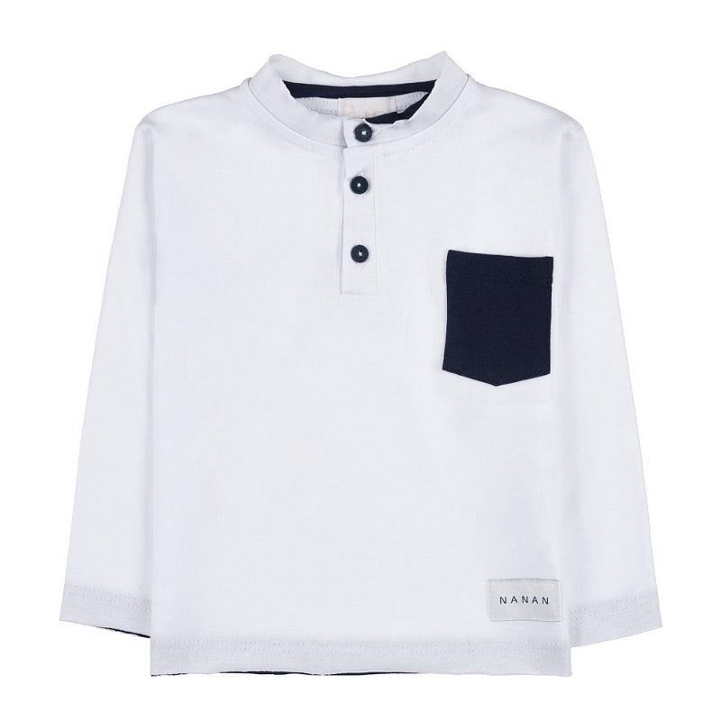 Normal price €45,50Graceful Bianca Serafino T-shirt, embellished with the presence of a tender blue pocket on the front. Front closure formed by 3 buttons.