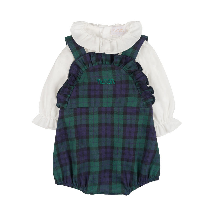 Normal price €56,80Pretty romper with shirt and dungarees in tartan from the "Xmas" collection. Bottom and rear opening.