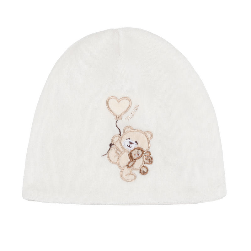 Normal price €15,90Delightful white hat from the "Balloon" collection, embellished with a sweet teddy bear applied to the front.