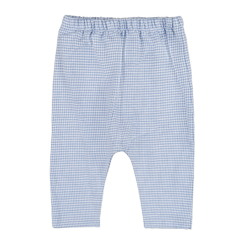 Precio regular €61,20Graziosa tutina due pezzi con gilet e pantalone in pied de poule azzurro della collezione “Pastelli boy”. Apertura posteriore.