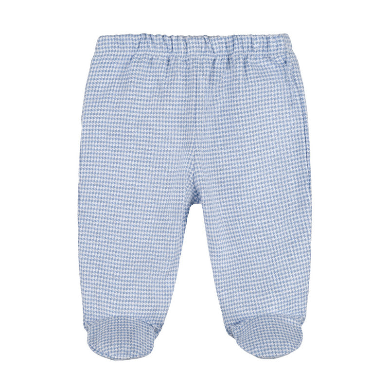Precio regular €57,80Graziosa tutina due pezzi con bretelle in pied de poule azzurro della collezione “Pastelli boy”. Apertura posteriore.