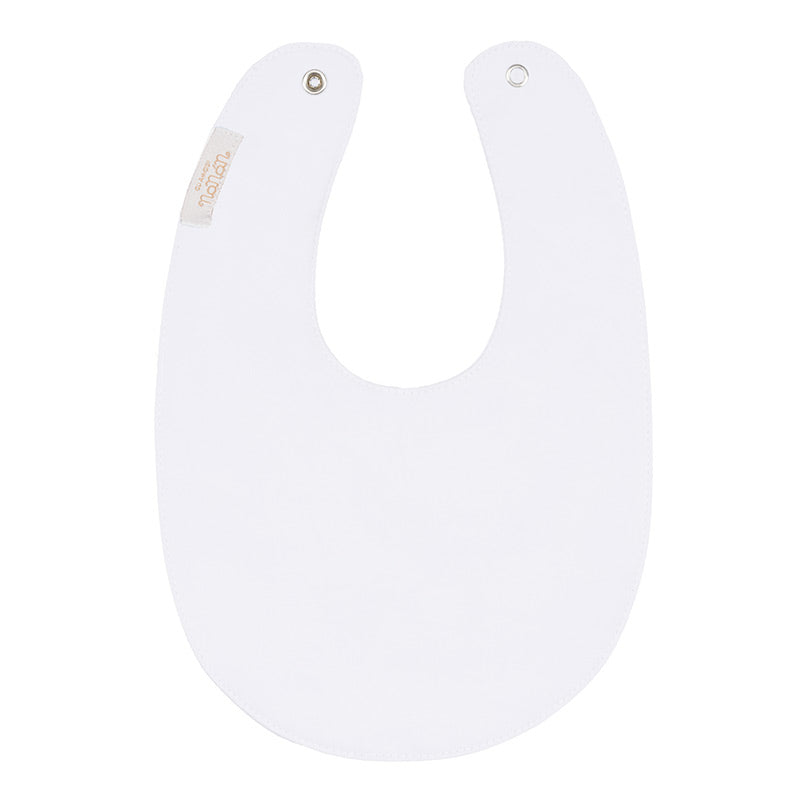 Bavaglio blanco dulce adornado con la palabra "mamá + papá = yo" del diseño de un oso.