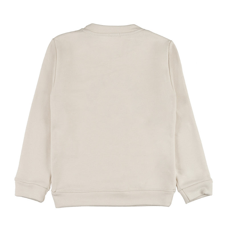 Esta sudadera combina comodidad y ternura en una prenda diseñada para los más pequeños. Presenta una adorable impresión bordada con oso de peluche en el centro, adornada con una corona de laurel y un escudo de armas con la letra "n", símbolo de la marca.