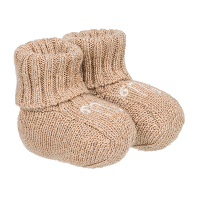 Bonitos zapatos de hilo, adornados por la presencia de la 'n' bordada en la parte delantera.