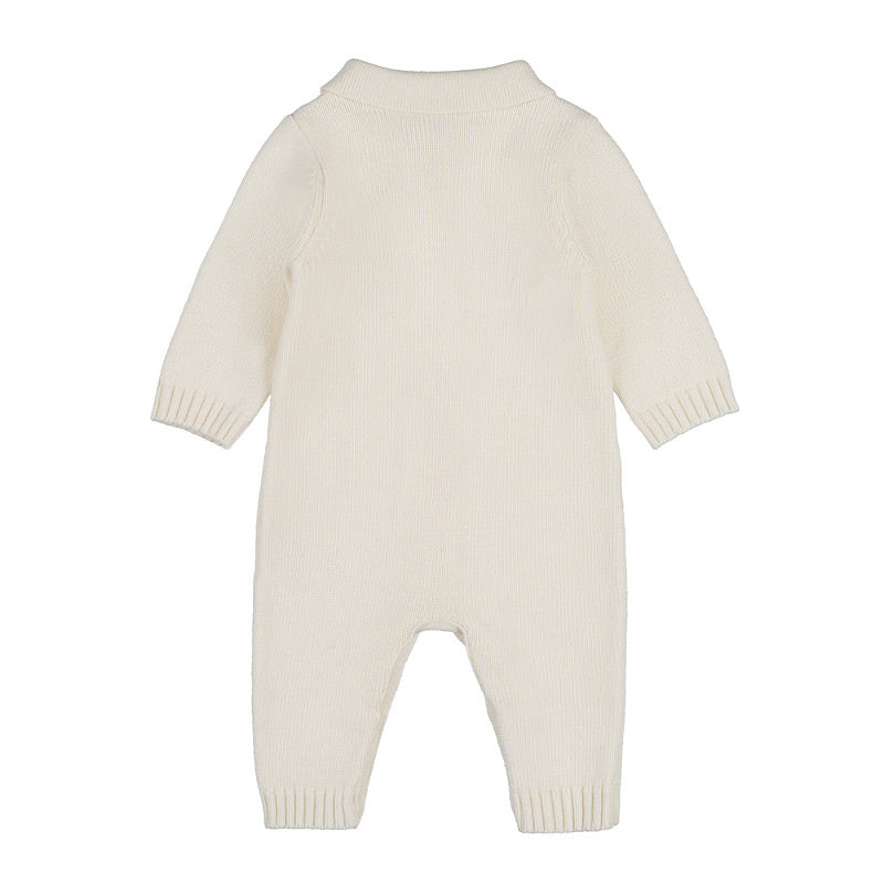 Graziosa tutina in filo aperta davanti con colletto, impreziosita dalla presenza della 'n' ricamata davanti.