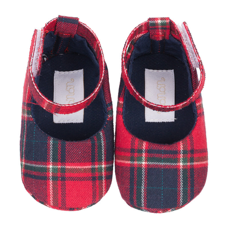 Queste adorabili ballerine in tartan rosso sono il mix perfetto tra eleganza tradizionale e comfort moderno. Il motivo scozzese dona un tocco festivo e raffinato, ideale per il periodo natalizio, cerimonie o eventi speciali.