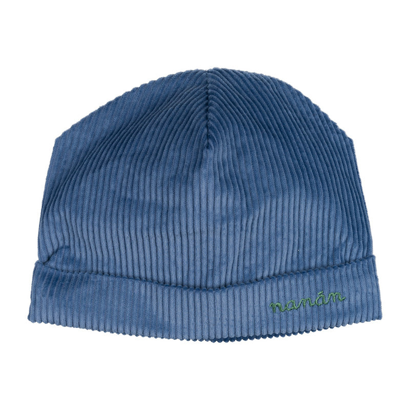 Bonnet côtelé bleu avec traîne