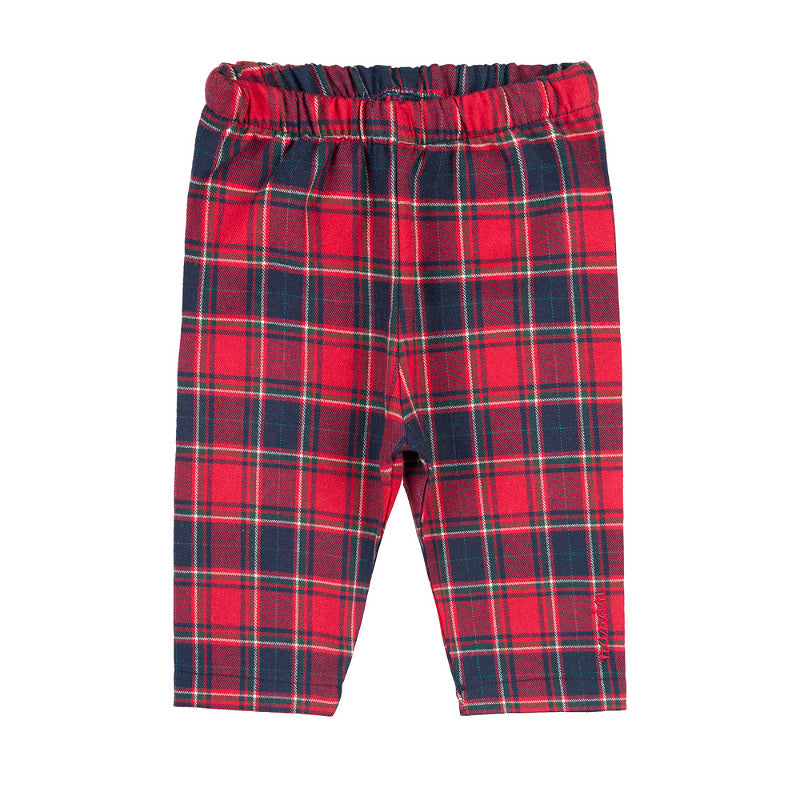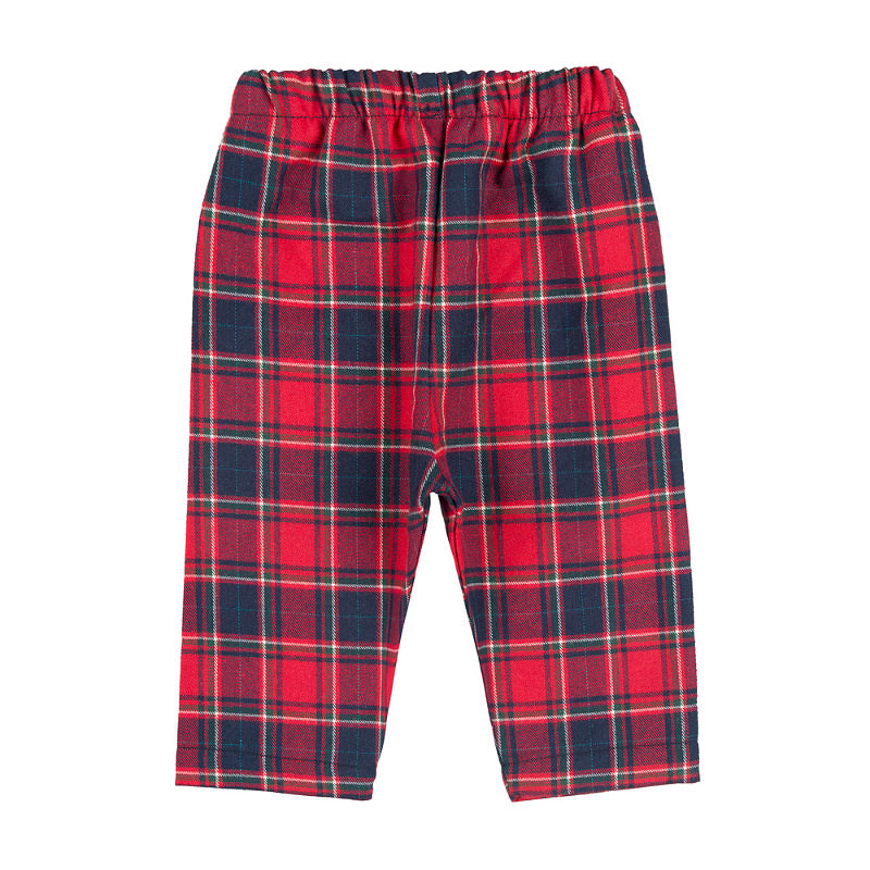 Le pantalon, coordonné à un motif tartan comme la chemise, possède une taille élastiquée confortable.