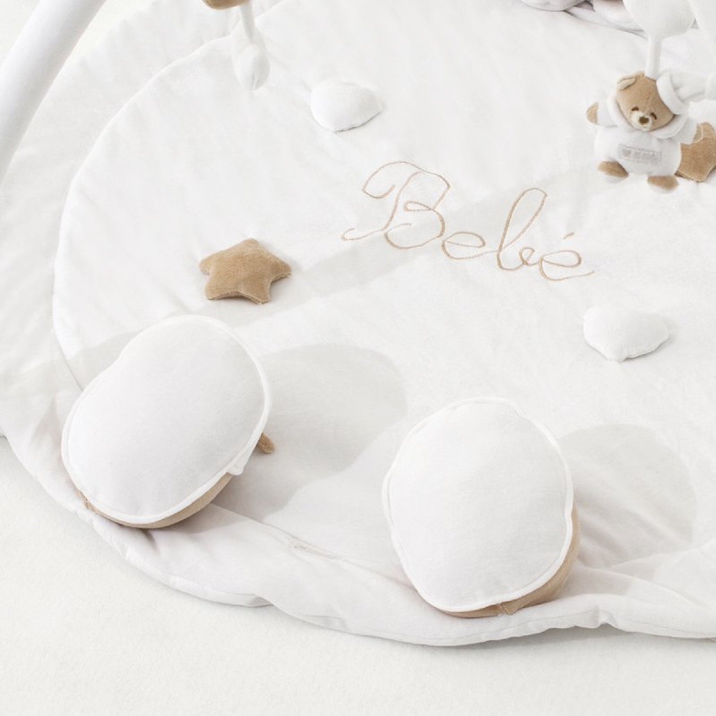 Palestrina est un lieu magique, de jeu et d'apprentissage. Un tapis doux de cinlle, légèrement rembourré de fibres étouffées, à partir de laquelle la tête et les pieds de l'ours tendre germe. Les étoiles sonores, les cœurs, les lunes et les ours suspendus stimulent les premières perceptions et le fantasme du bébé. Les amis de l'enfance vous accompagnent et suivent le bébé pendant les premiers pas et les premiers fantasmes! Dimensions: 90x55cm