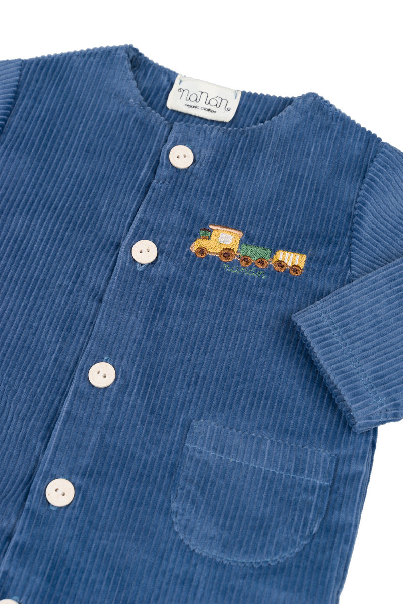 Confortable et pleine de style, cette combinaison est confectionnée en velours côtelé doux. L'adorable broderie de train sur la poitrine ajoute une touche ludique. Les boutons sur le devant permettent un ajustement pratique et fonctionnel, idéal pour des changements rapides.
