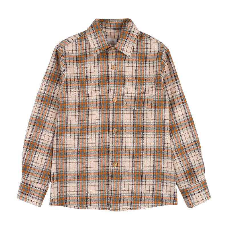 La camicia a quadri è il capo perfetto per i look casual e confortevoli della stagione fredda. Realizzata in tessuto morbido, presenta un classico motivo tartan nei toni del beige e arancione, con bottoni frontali. Un modello intramontabile che si abbina facilmente sia a jeans che a pantaloni eleganti.