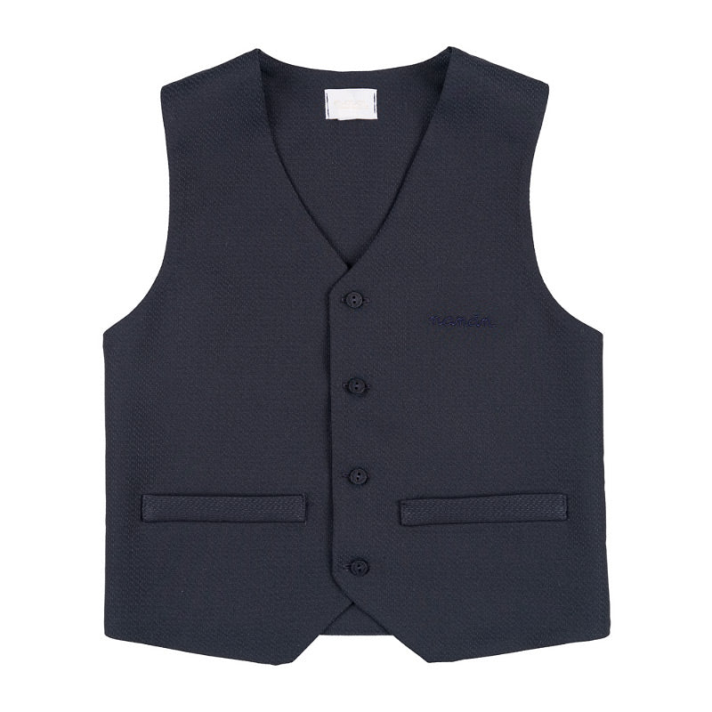 Questo gilet, dal design classico e raffinato, presenta una chiusura con quattro bottoni frontali e due tasche laterali. Il ricamo tono su tono con il logo "Nanán" sul petto aggiunge un tocco discreto ed elegante. Ideale per cerimonie, eventi formali o occasioni speciali, da abbinare con camicie e pantaloni coordinati della collezione.