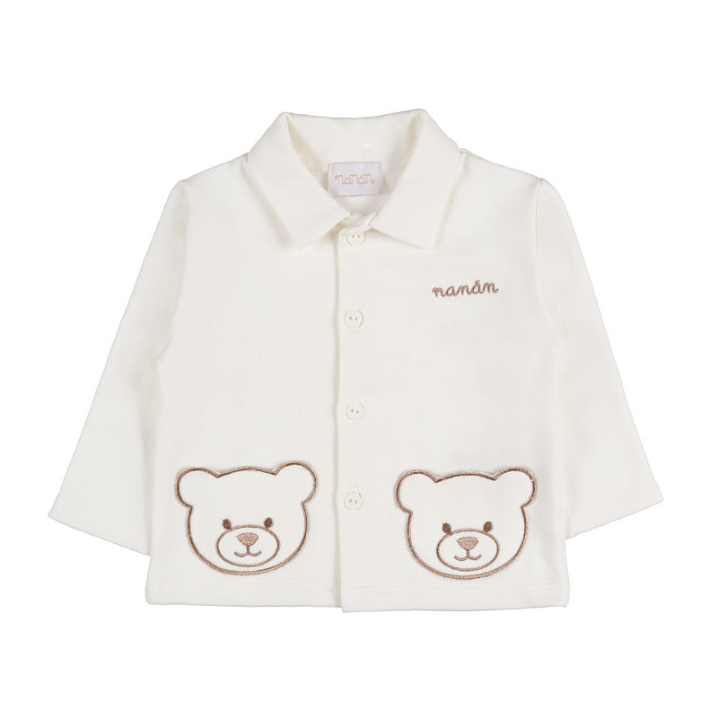 Tutina due pezzi aperta davanti panna con tasche orsetto