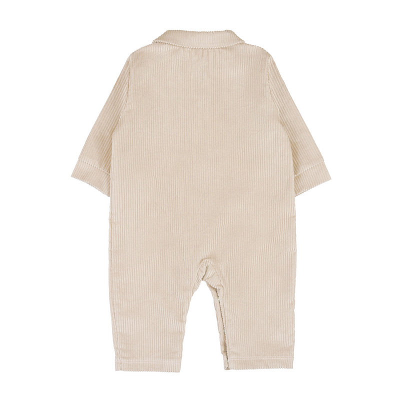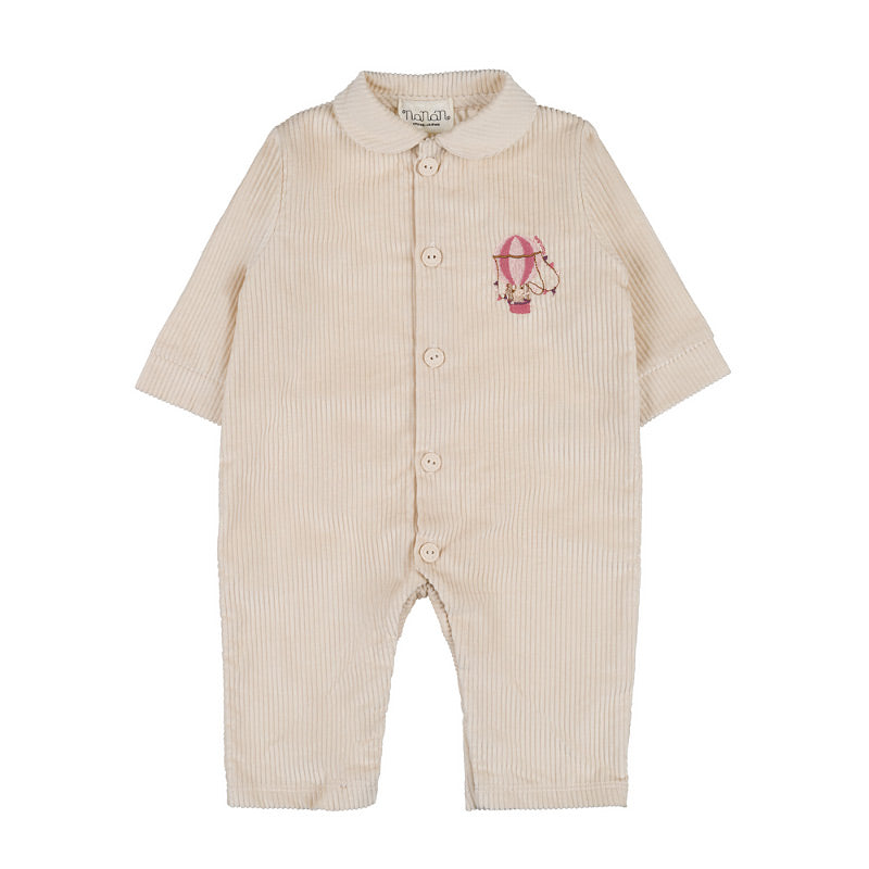 Avvolgi il tuo piccolo in comfort e dolcezza con questa deliziosa tutina in morbido cotone a costine. Il pratico design con apertura frontale facilita il cambio, mentre il colletto aggiunge un tocco elegante e raffinato. Il ricamo laterale con una simpatica mongolfiera regala un dettaglio tenero e sognante, perfetto per accompagnare i primi momenti del tuo bambino. Ideale sia per l’uso quotidiano che per le occasioni speciali.