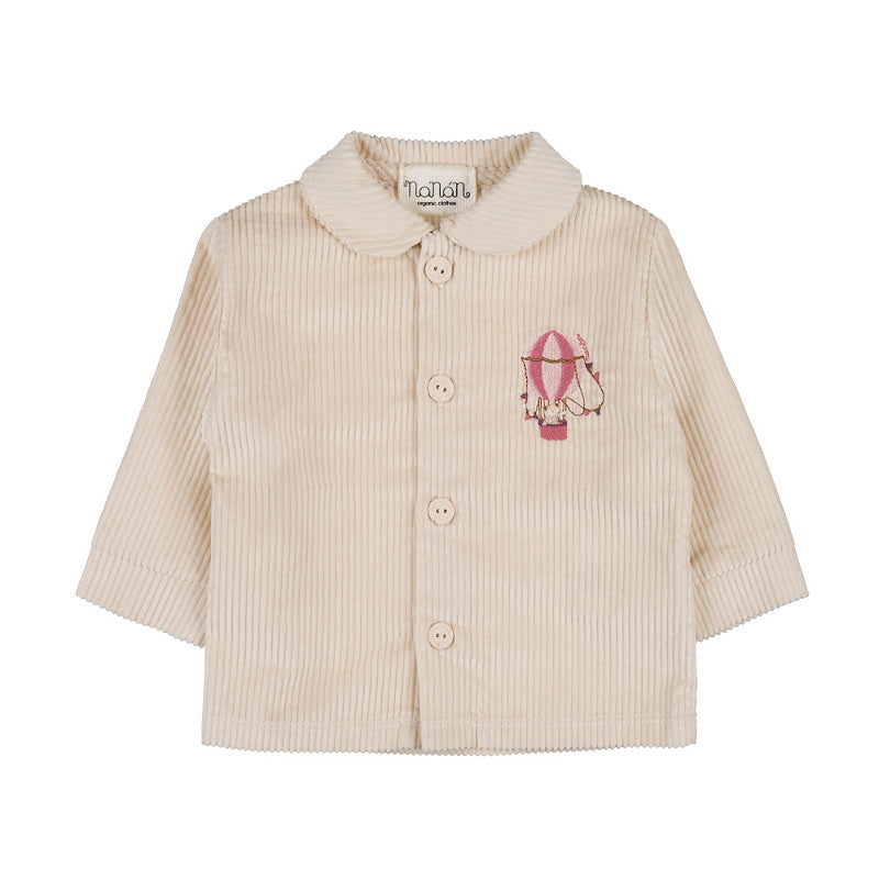 Comodità, stile e dolcezza si uniscono in questa graziosa tutina due pezzi a costine. Realizzata in morbido tessuto a costine, è delicata sulla pelle e ideale per accompagnare i primi mesi con il massimo comfort. Il design aperto davanti con pratici bottoncini rende il cambio facile e veloce, mentre il colletto aggiunge un tocco elegante. Il ricamo laterale con una mongolfiera colorata completa il look con una nota di fantasia e tenerezza.
